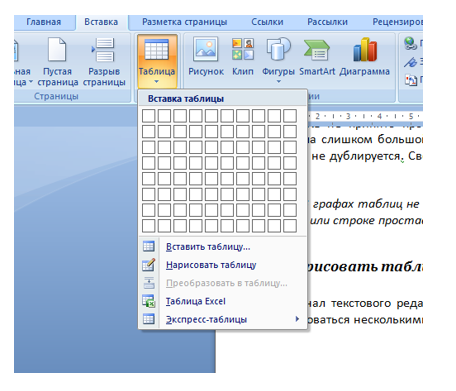 У верхній панелі керування у вкладці «вставка» є відповідна опція. Вона підходить для таблиць із максимальним розміром 10*8. Якщо цього достатньо, алгоритм дуже простий. Це універсальні базові таблиці.
