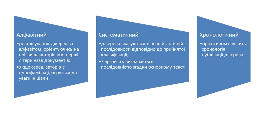 Вимоги ВАК (МОН) допускають оформлення списку літератури трьома способами: